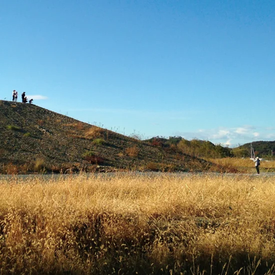 the second tsunami barrier wall, a huge soil mound, was also part of the route. unusual viewpoints were enjoyed by the visitors.